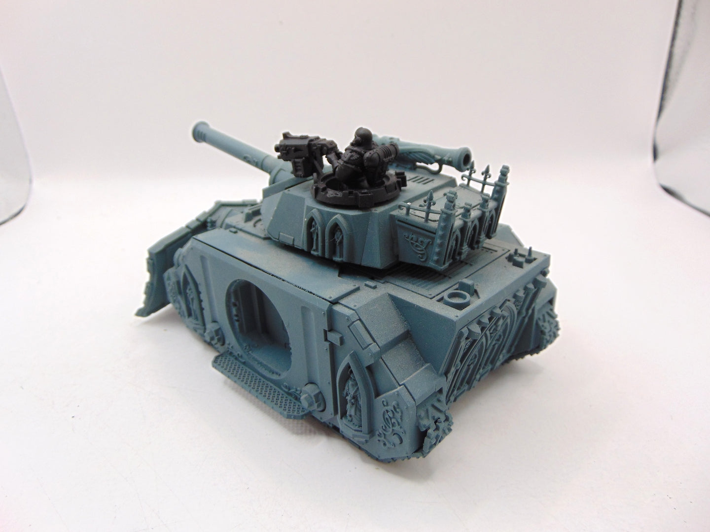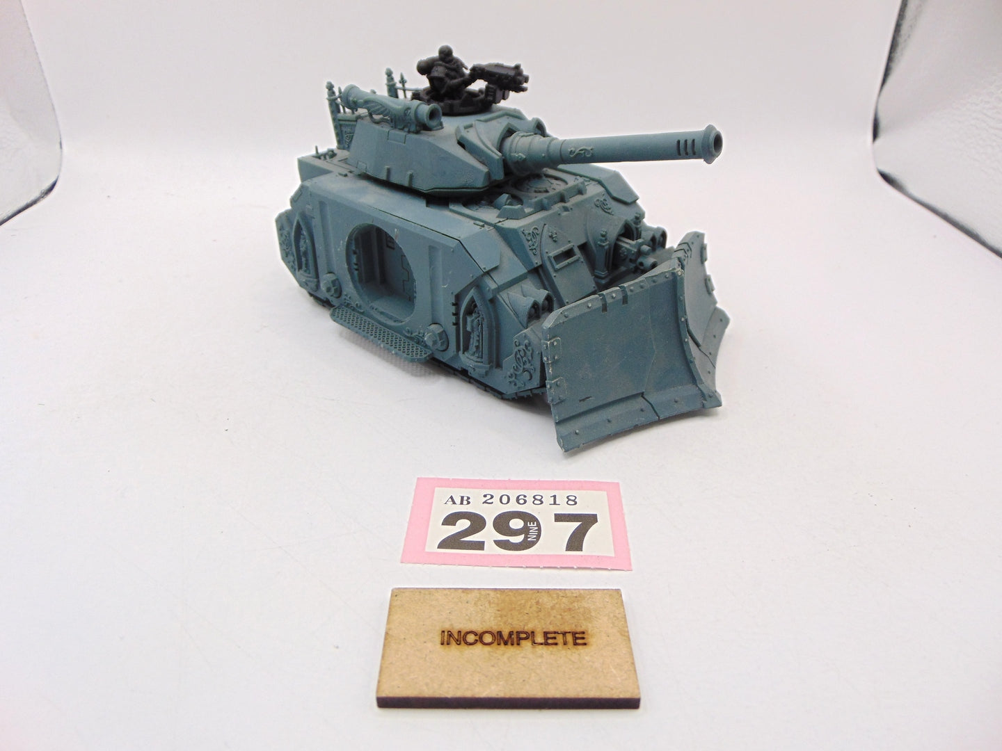 This item is missing both of its side sponsons and has been converted to have a dozer blade.