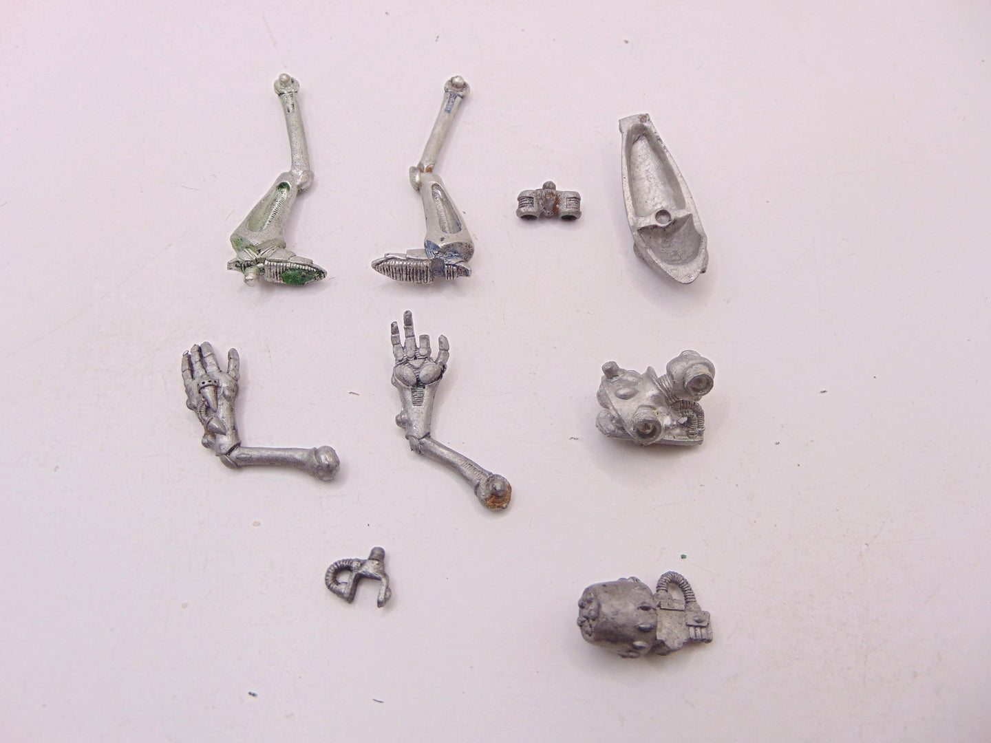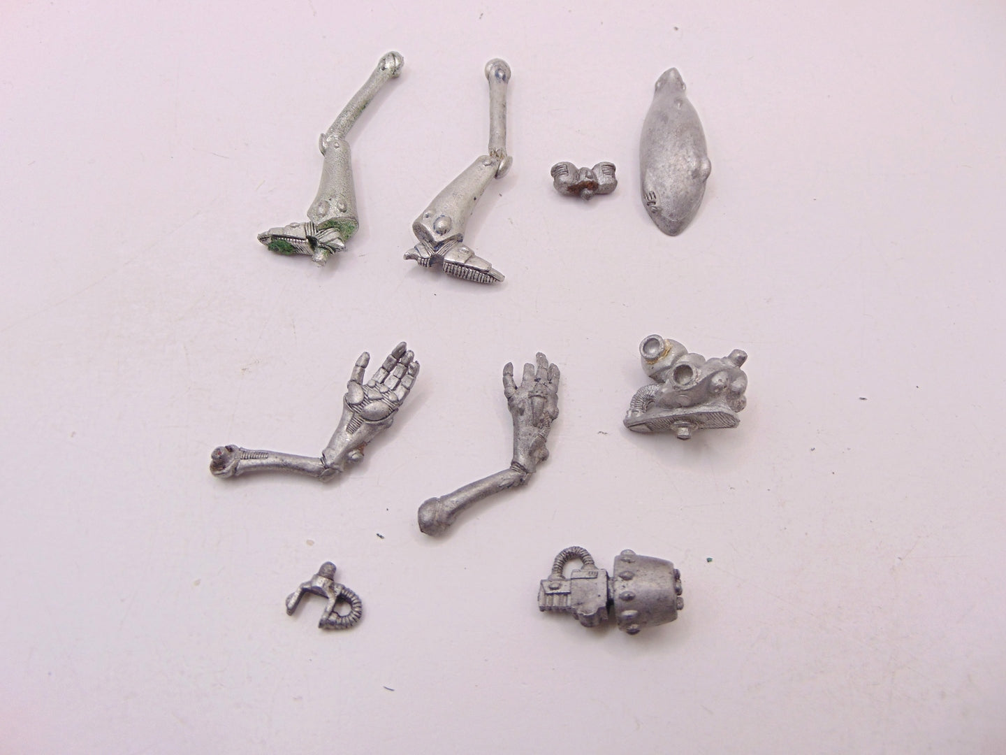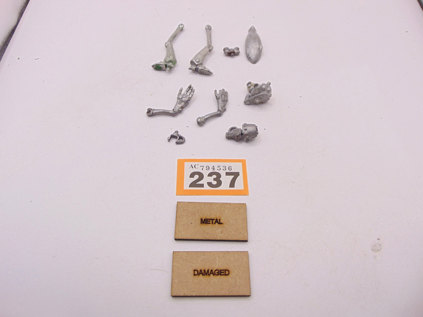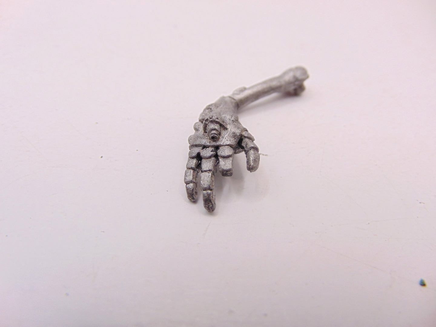 This item has a damaged finger and missing its back piece.