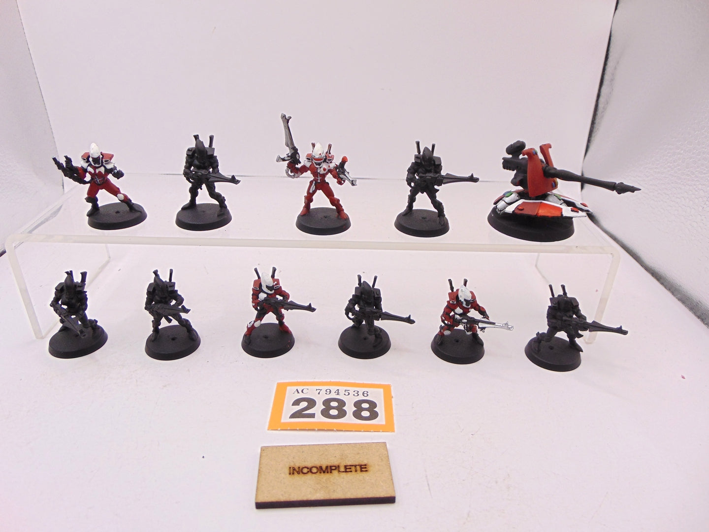This item has a damaged weapon and missing back fins. This item also contains a converted arm.