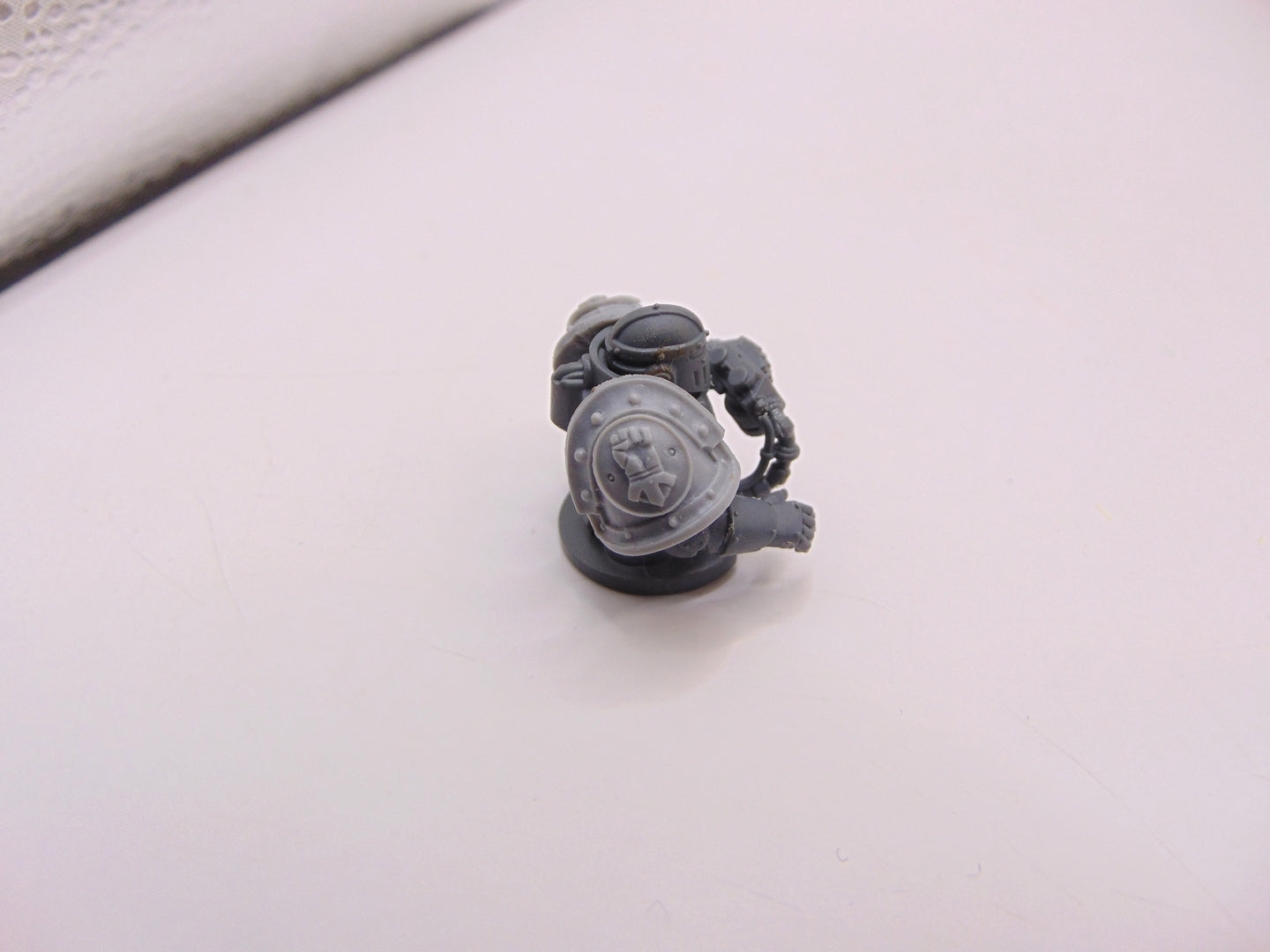 This item has a crew member with Imperial Fists Fore World shoulder pads.