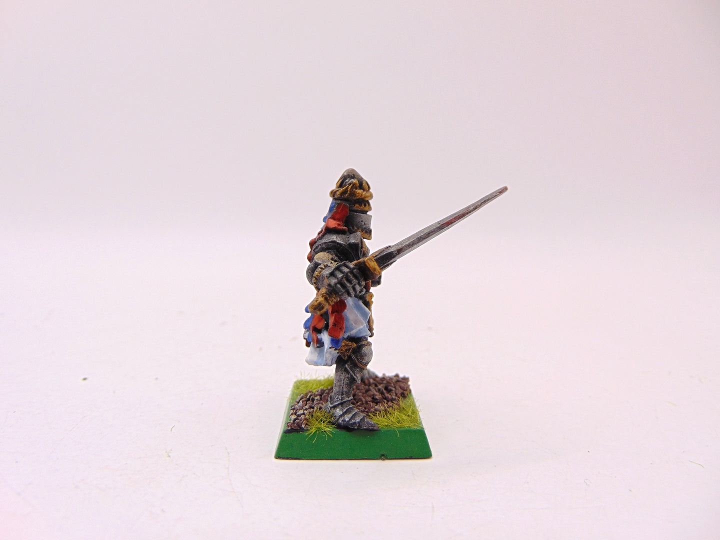 This item has a converted helmet and arm position. This item is missing its shield.
